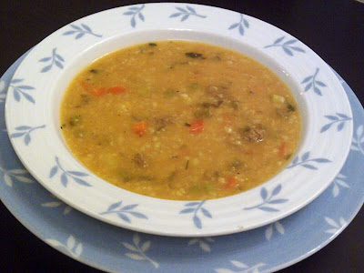 بالماء الحار و يطبخ قليلا ثم تضاف البطاطس و عندما تنضج يعدل الطعم و تضاف قطع